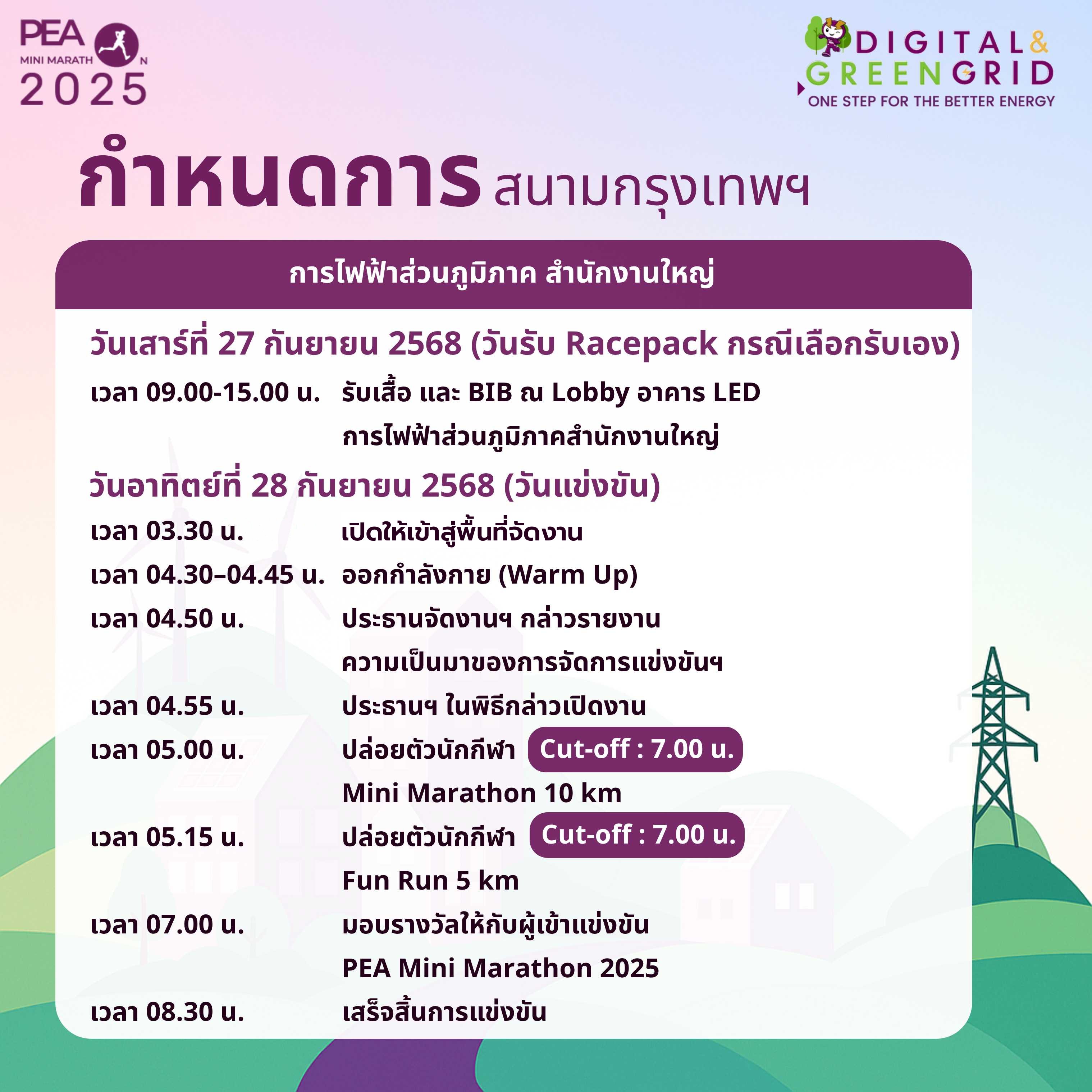 กำหนดการรับสมัคร และกำหนดการวิ่งของแต่ละสนาม